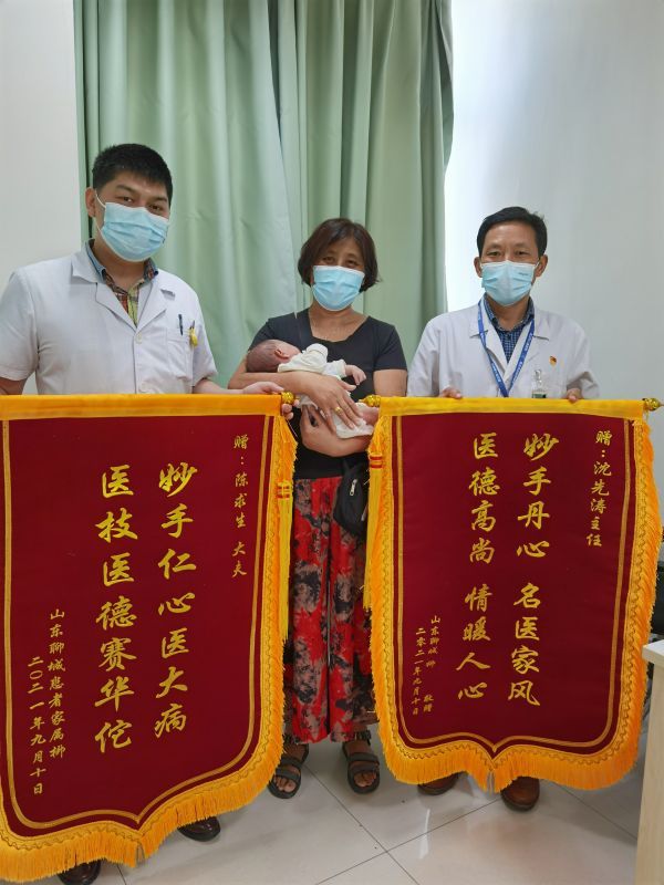 孩子双腿恢复情况大好,孩子的家人将两面锦旗送给沈先涛主任和陈求生医生。通讯员张祖国 摄