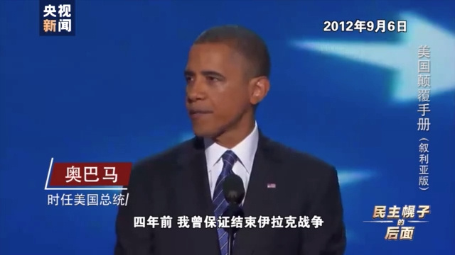 时任美国总统 奥巴马:四年前,我曾保证结束伊拉克战争。我们做到了。“基地”组织正走向失败,奥萨马·本·拉登已经死了。