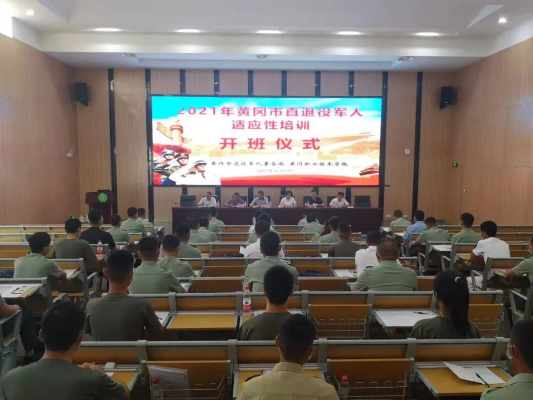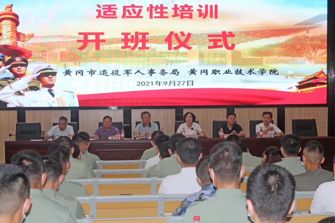 9月27日上午,黄冈市退役军人事务局与黄冈职业技术学院联合举行2021年度退役军人适应性培训班开班仪式。黄冈市退役军人事务局党组书记、局长黄智利,党组副书记、副局长余继波,黄冈职业技术学院校长助理、校办主任刘明涛,成人与继续教育学院院长查方能,市财政局四级调研员、社保科科长蔡平均,市人社局四级调研员、事业科科长张先锋出席开班仪式,黄冈市直48名军转干部、转业士官、复员士官和义务兵参加开班仪式。