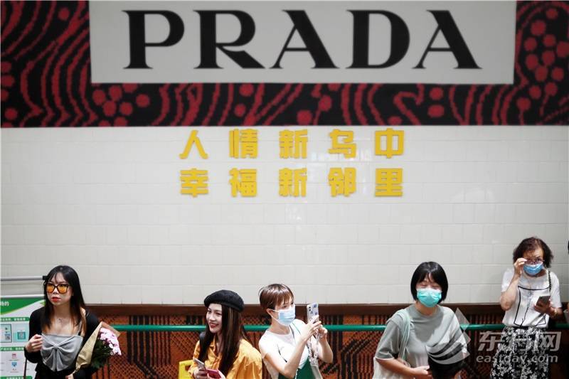 经过测量体温、查验健康码之后,走进乌中市集,人们不由发出惊叹。几何图案印花包裹建筑外墙及内饰,重塑街区风景并获得别具一格的标志性设计,Prada元素融满整个菜场,五颜六色的水果也可以很艺术,穿上“衣服”的蔬菜在独特的“秀场”上,引领着今年秋冬最前端的潮流。