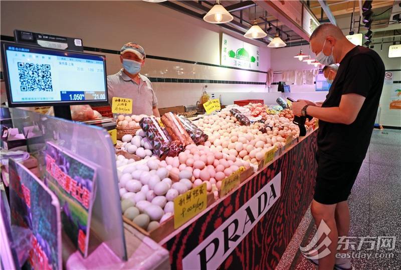 不少打扮时尚、做好美甲的小姐姐特地来到乌中市集,有的还带着男友做御用摄影师,在鸡蛋摊前、在熟食窗口,买上一些新鲜食材,接过Prada包装袋后不忘凹造型拍照。“其实我不太会做饭,但觉得这样的菜场很有魅力,专程打车过来参观的。”顾小姐戴着墨镜,妆容精致,悄悄地告诉记者。