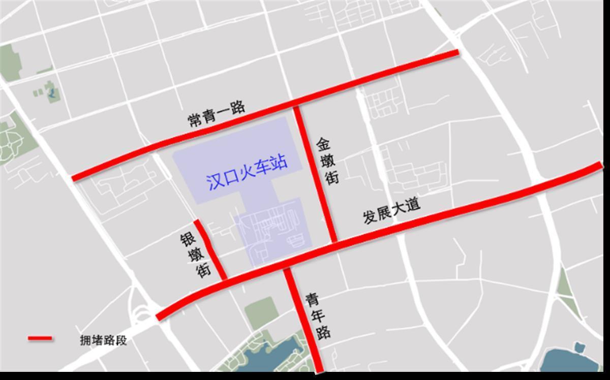 火车站:三大火车站在假期前一天与假期首日拥堵最为突出,预计拥堵最高峰出现在9月30日,可能达到严重拥堵状态。汉口火车站周边交通压力最大,周边的发展大道、金墩街、汉口站横路、青年路、银墩街、常青一路可能会在9月30日、10月1日的8时至22时出现长时间的拥堵现象;10月2日至5日,周边路段拥堵主要出现在每日11时至17时;10月6日至7日为返程高峰,周边路段在14时至16时可能出现长时间的严重拥堵。武昌火车站周边的中山路、紫阳东路可能在9月30日的10时至23时易发生持续拥堵,1日、6日、7日的9时至11时拥堵较为集中,另外火车站周边的梅家山立交、大东门转盘、小东门路口等节点交通压力也将显著提升。