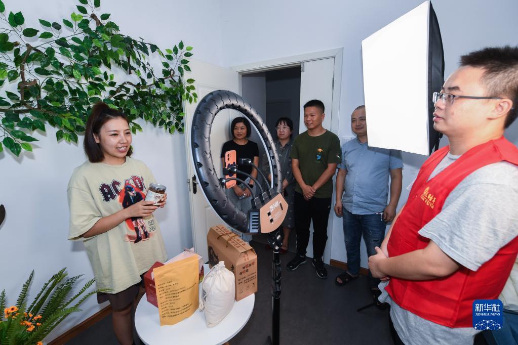 9月29日,在杭州市临安区清凉峰镇新农人创客中心,党支部正在开展直播培训活动。