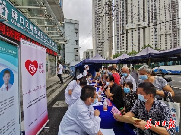长江日报大武汉客户端9月29日讯 29日是世界心脏日,为了服务更多居民,7位华中科技大学同济医学院附属同济医院心血管内科的医护人员提前1小时赶到硚口区韩家墩街社区卫生服务中心,当天7时40分起开始为居民义诊,其中包括70岁的刘正湘教授。