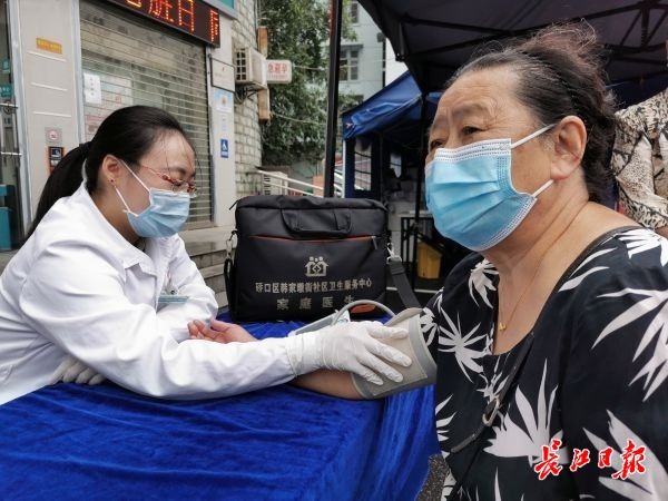 中心家庭医生马惠君为居民量血压。长江日报记者余丹夏 摄