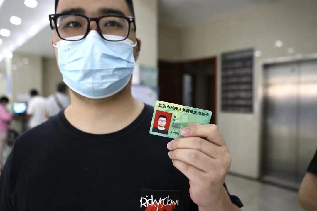 残疾人代表展示乘车卡。长江日报记者陈玲 摄
