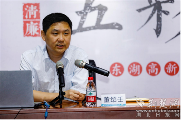 董必武之孙、湖北省董必武思想研究会会长董绍壬,应邀在东湖高新集团“新清廉”大讲堂第一课分享《董必武的故事与家风》。 通讯员供图
