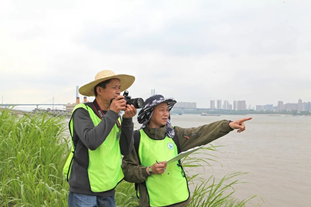柯志强(右)与志愿者一道在长江边巡视排污情况。
