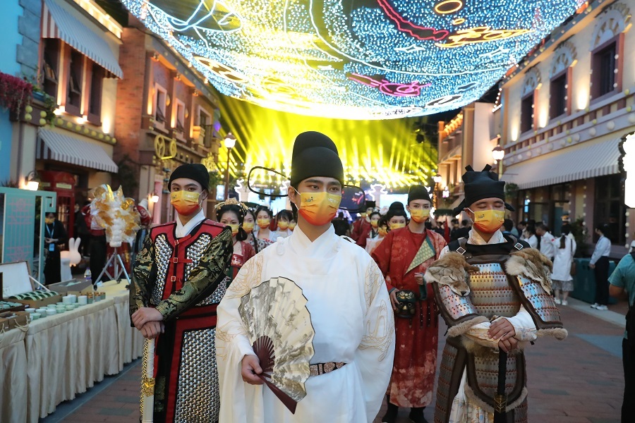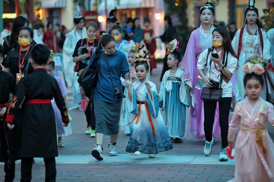 演员身着汉服巡游。(中国日报记者 姜东 摄)