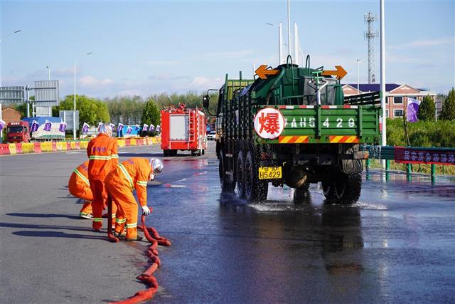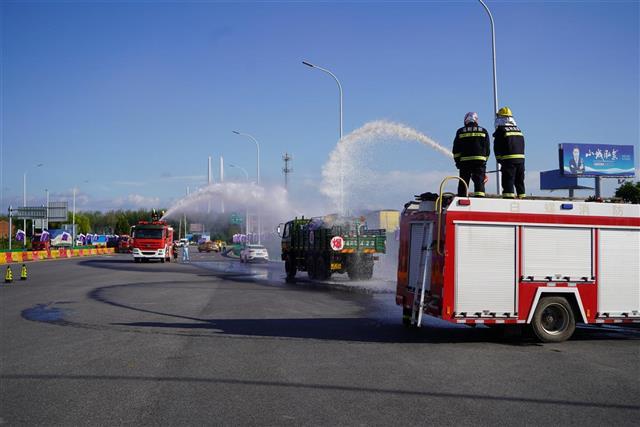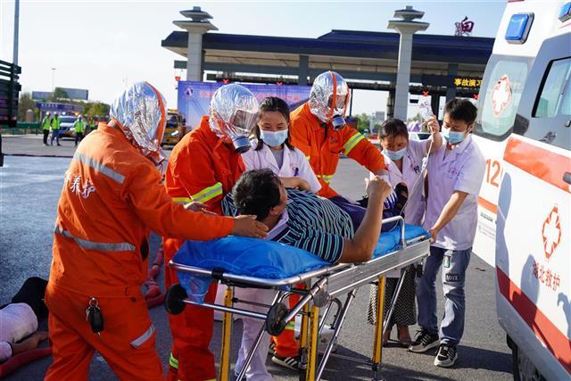 湖北日报讯(记者戴辉、通讯员谭书妮)9月29日,在鄂湘边界的许广高速荆岳长江大桥白螺收费站,上演一场危化品泄漏应急处置演练。