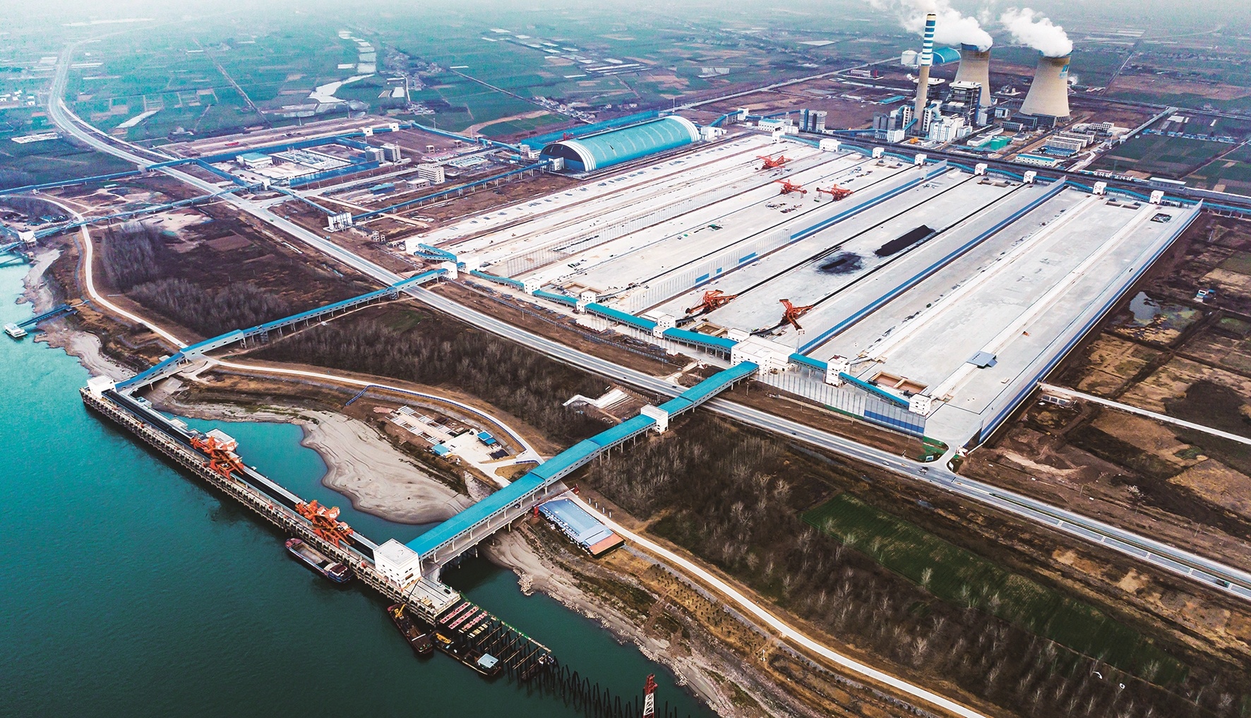 该堆场宽876米、长987米,由西至东布置8条堆取作业线,共布置13条煤堆场,静态储存能力达305万吨。该工程自2019年2月1日开始施工,至今年9月28日完工。项目建成后,将成为华中地区最大的煤炭中转、交易平台和湖北省煤炭应急储配供应保障平台,具备物流配送、应急储配、配煤加工、煤炭交易四大功能。