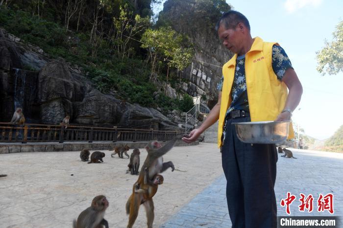 中新网河池10月1日电 题:猴进人退 广西七旬“猴王”带领村民走上生态资源致富路