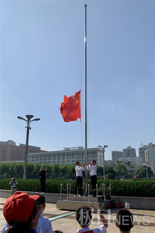 为庆祝中华人民共和国成立72周年,10月1日上午9时30分,武汉洪山广场举行“迎国庆·升国旗”仪式,现场共邀请了20组亲子家庭和广场保安、保洁、园林绿化工人参加,升旗仪式吸引了游客纷纷驻足停留,自发加入升旗仪式当中,向国旗敬礼。