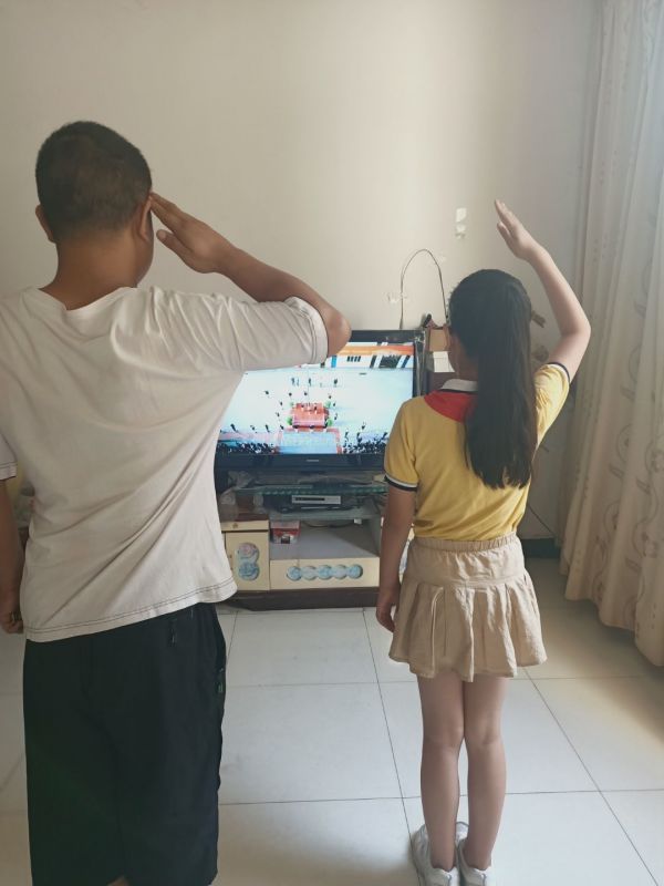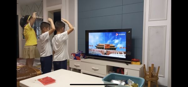 孩子们佩戴红领巾,注视电视中国旗升起,和家人一起唱国歌,一起向祖国献礼。仪式简朴而庄重,孩子们用最简单的动作表达最真挚的情感,爱祖国、爱家人、爱人民、爱自己。