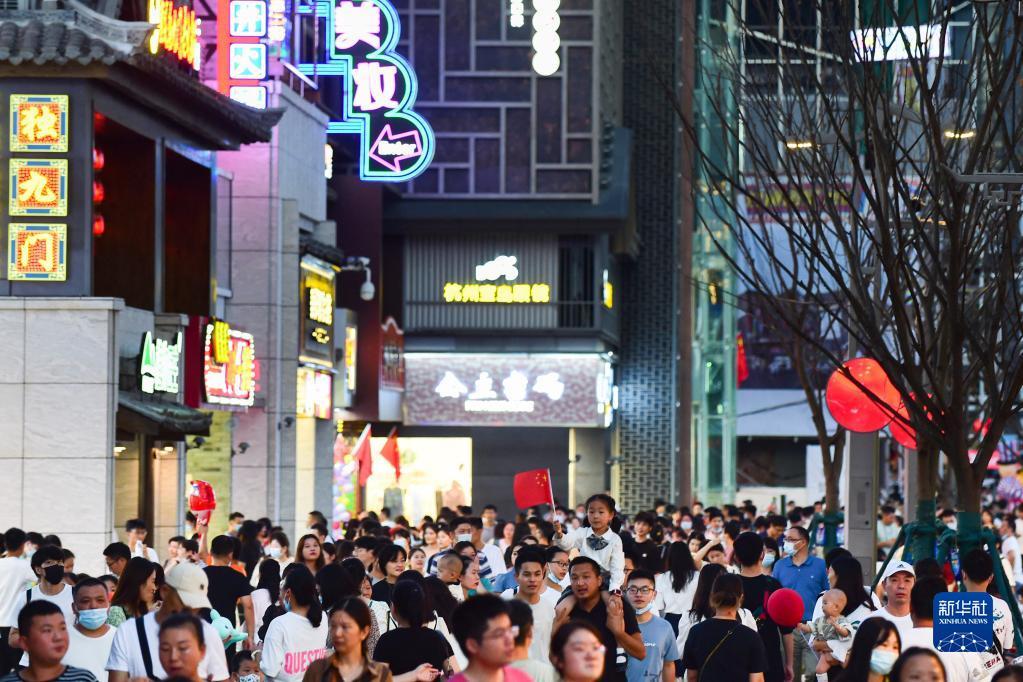 10月1日晚,游客在安徽省合肥市淮河路步行街游览。新华社记者 杜宇 摄