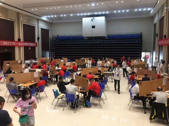 长江日报大武汉客户端10月2日讯(记者朱文秀 通讯员杨汉成)2日上午,武汉市第十一届运动会成年人体育类桥牌比赛在武汉工人文化宫开赛,来自全市11个区代表队的桥牌爱好者以牌会友,欢度国庆佳节。