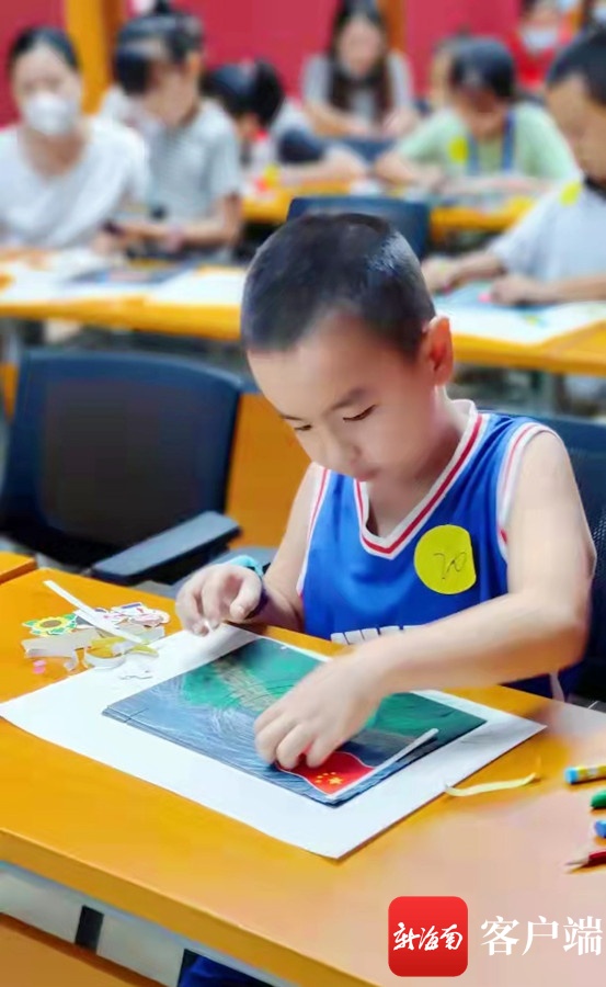 海南省民族博物馆举办国庆节亲子活动,邀请亲子家庭手工绘画。活动主办方供图