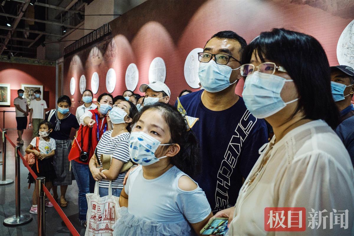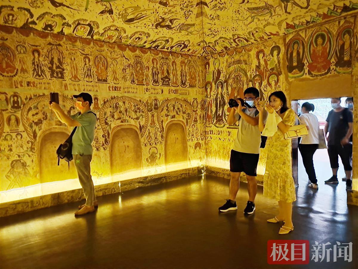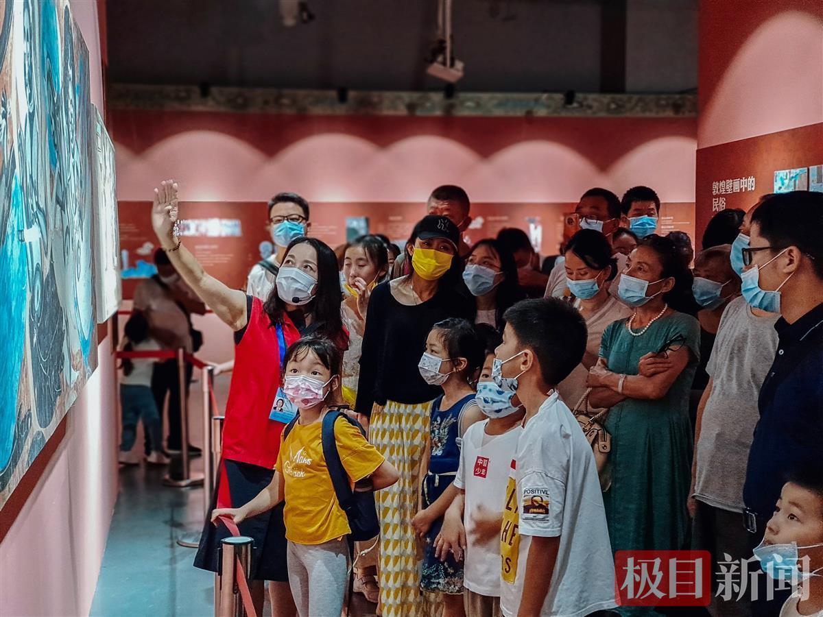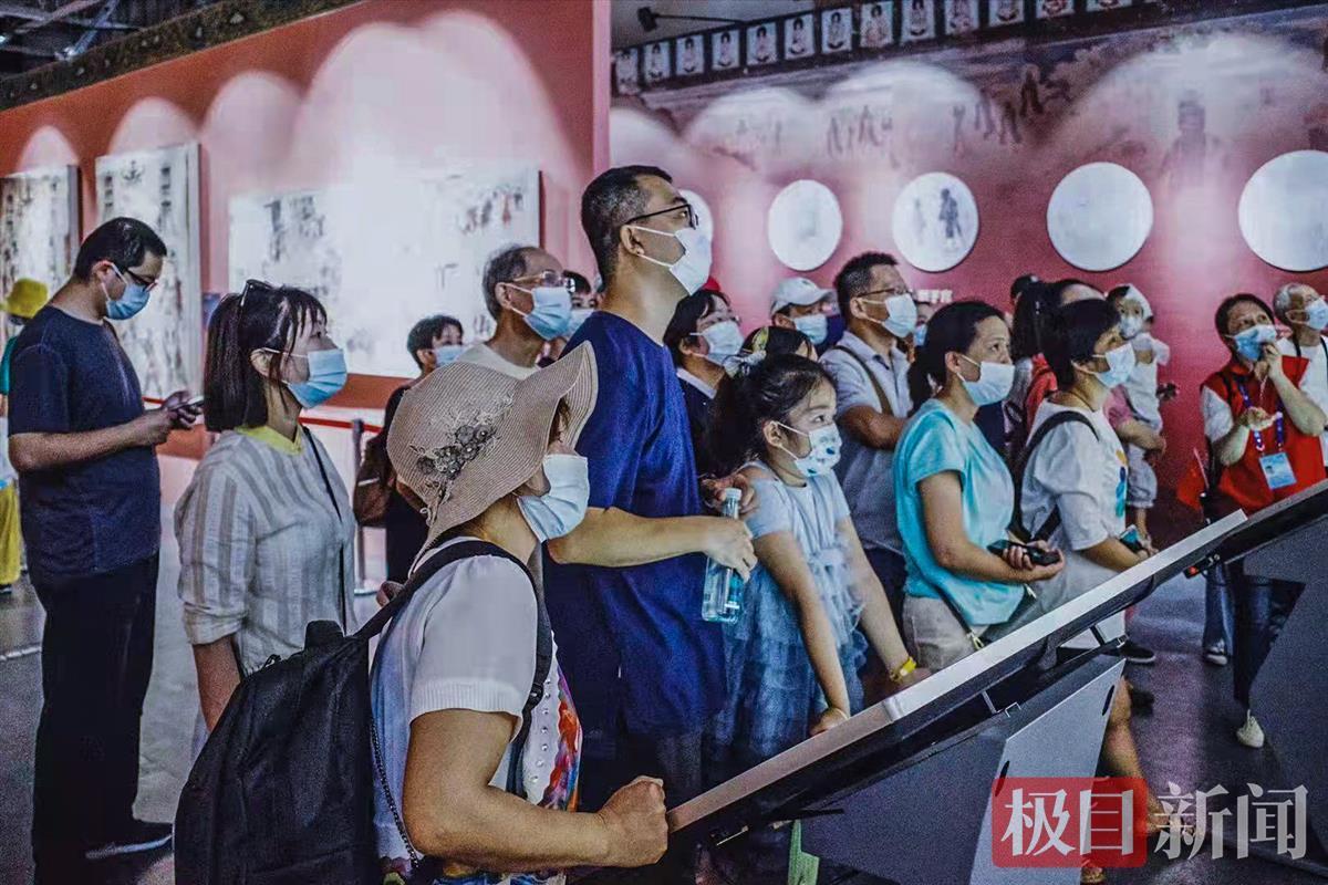 10月3日一大早,不少游客就走进武汉园博园打卡长江文明馆,参观园博园长江文明馆展出的“千年丝路·梦幻长江——敦煌壁画艺术精品公益巡展”。
