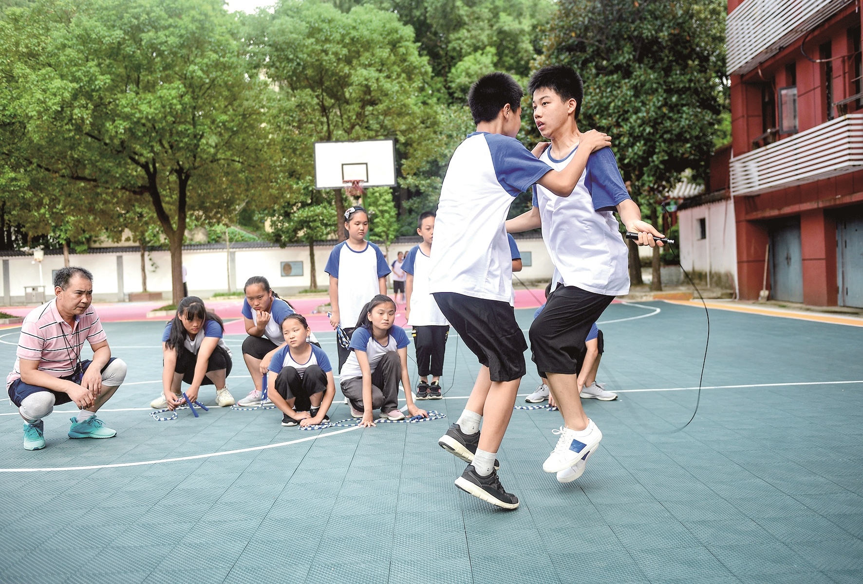 当日,易文清和谢钧教练带领着孩子们反复练习。他们告诉记者,疫情推迟了原定的集中训练,从9月份开学以来,孩子们都是一天三练,早上6时不到就开始跑步练体能,下午重点冲刺跳绳的速度,晚上巩固练习花样动作。