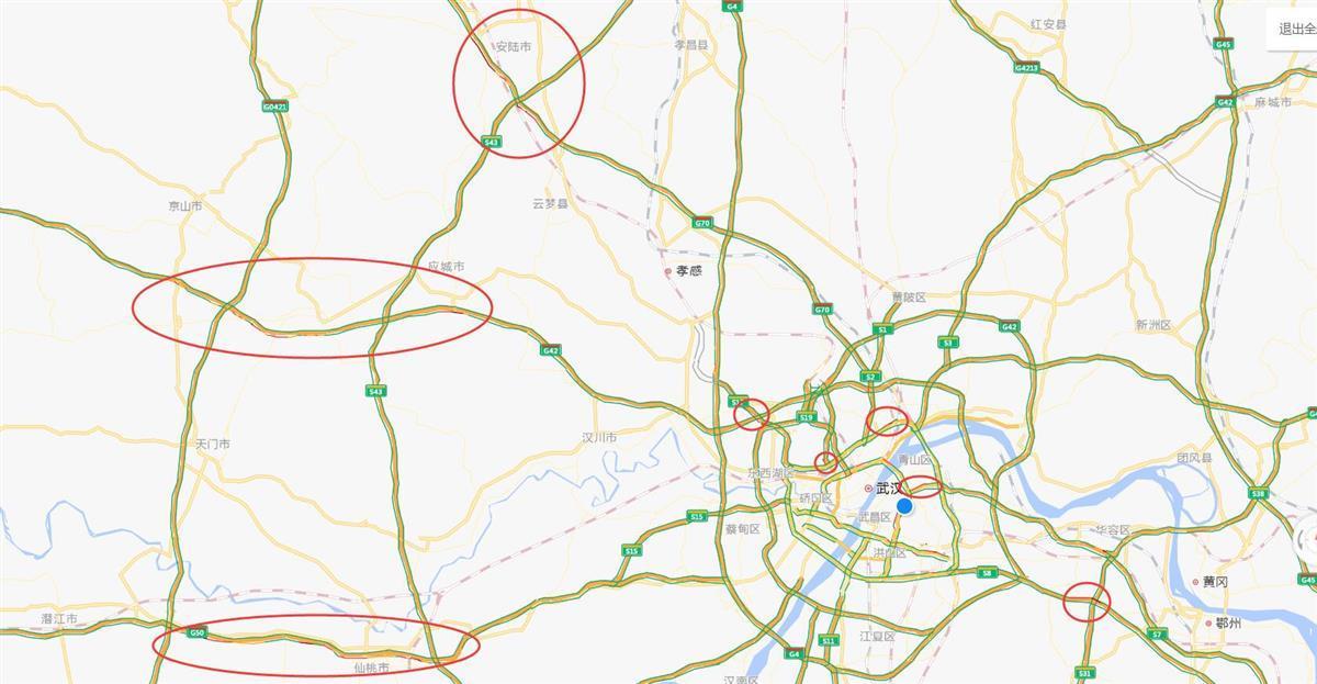 除了以上3条高速公路,南北方向的武汉绕城(京港澳)高速,东南方向的武黄、武鄂高速,东北方向的武麻(沪蓉)、武英(沪武)高速,在进入武汉的方向,都有较大概率发生交通事故,从而形成较长时间的拥堵。