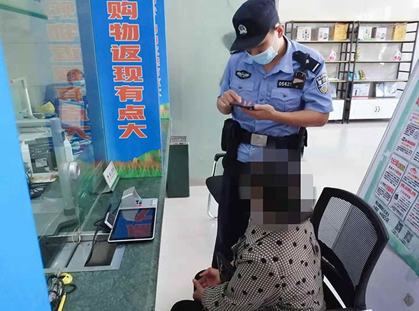 湖北省荆州市公安县公安局夹竹园派出所民警赶到银行阻止群众向诈骗分子汇款。