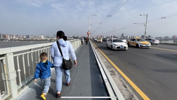 “这里可以通到武昌那边的黄鹤楼,那一头是蛇山,这一头是龟山,这就叫龟蛇锁大江。”从汉阳桥头堡上到桥面后,一位奶奶牵着小孙子,指着江对岸的黄鹤楼,讲起了黄鹤楼的故事。