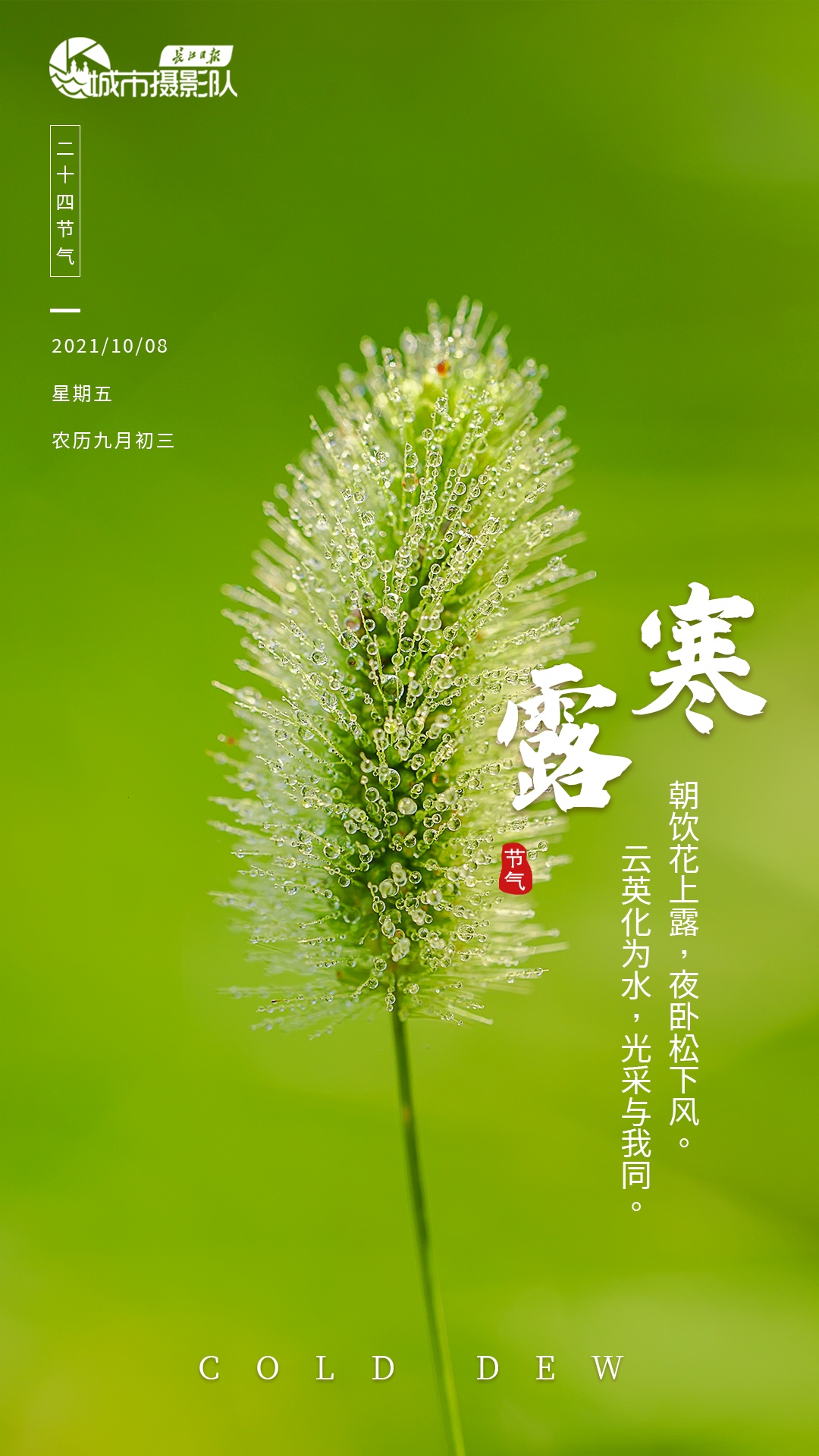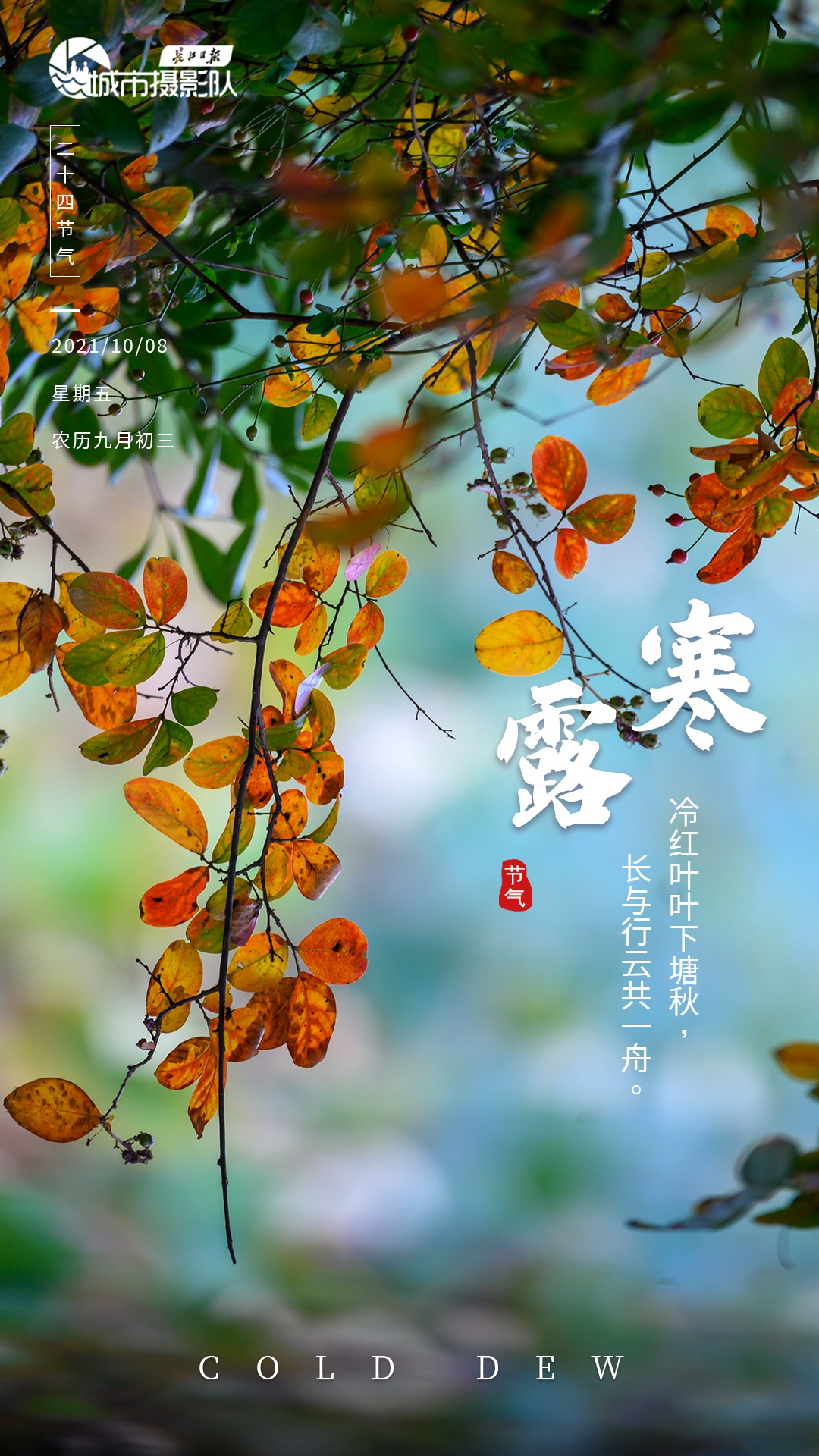 长江日报大武汉客户端10月7日讯(记者甘娟)萧疏桐叶上,月白露初团。滴沥清光满,荧煌素彩寒。10月8日,将迎来一年中天寒露重的第十七个节气“寒露”。欣赏长江日报城市摄影队的一组美图,一起来感受“光阴的故事”二十四节气之美。