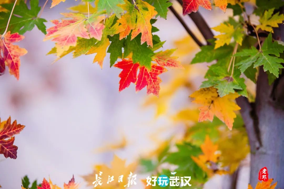 同一棵红花槭、黄栌上的树叶,会同时呈现红黄橙绿好几种颜色,随着气温一天天降低,它们最终会变成秋天的色彩。