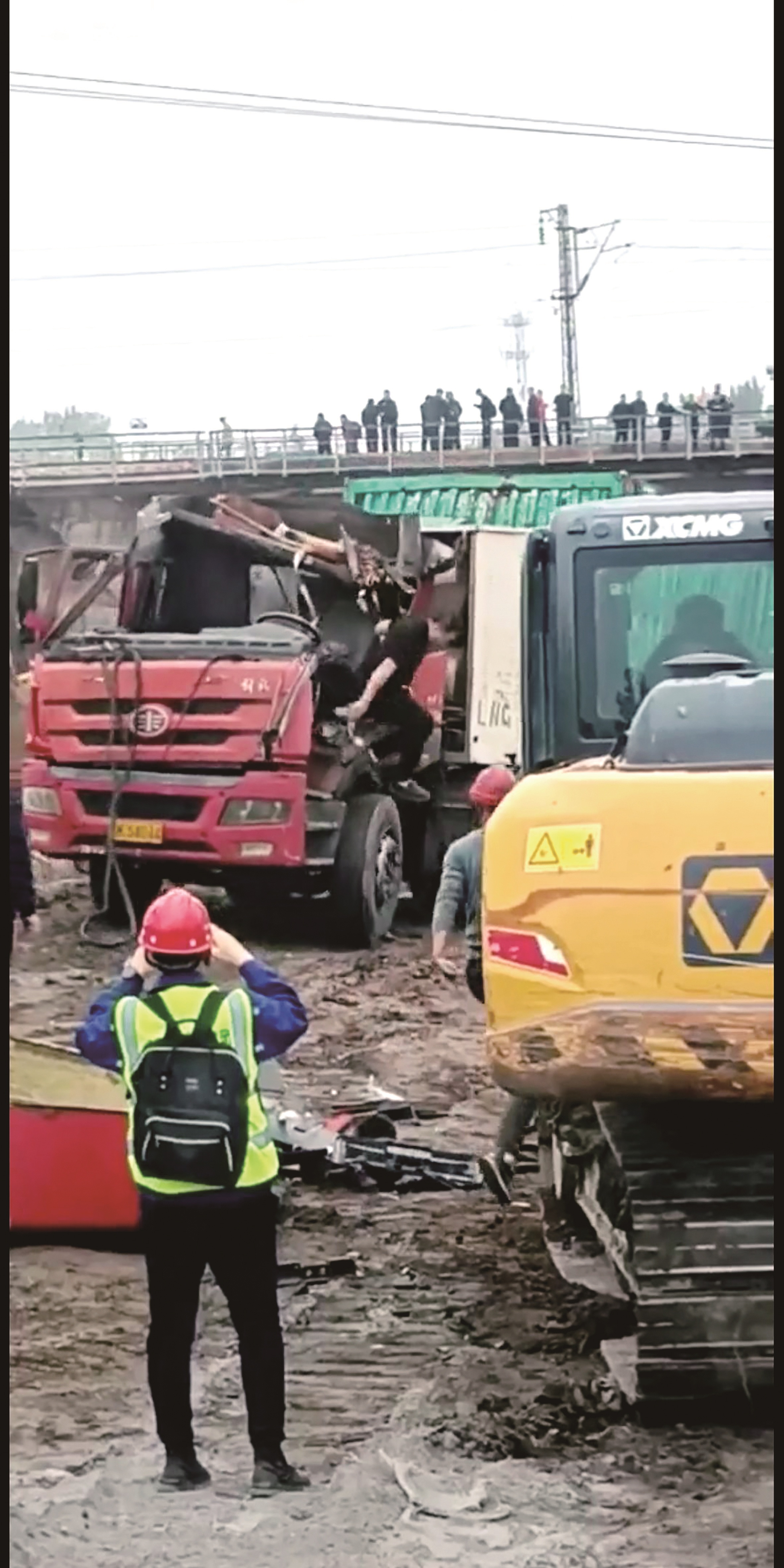 7日的网传现场视频显示,当日在被大水冲垮的昌源河大桥前,抗洪抢险人员将废弃的公交车以及卡车投入河水内,填堵决口。视频显示,抗洪抢险人员用挖机将一辆公交车顶部戳开一道口子,随后将一些石块填充进车辆内部,装满石块后,一台铲车将公交车缓缓推进河水内。另一段现场视频显示,一名抗洪抢险人员一边小心查看车辆后方情况,一边操控着方向盘,只见其采取倒车的方式,驾驶半挂卡车朝河水方向冲去。就在卡车即将投入河水的一瞬间,这名抗洪抢险人员,迅速跳出了驾驶室。