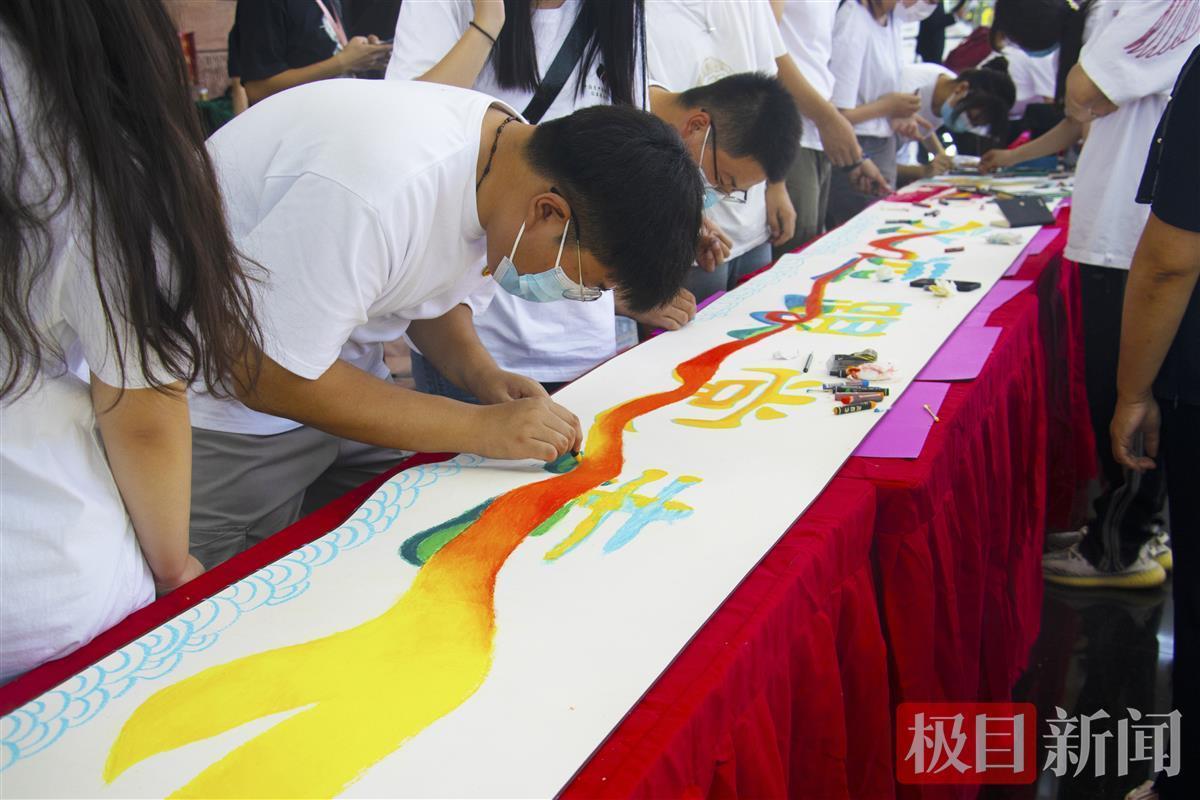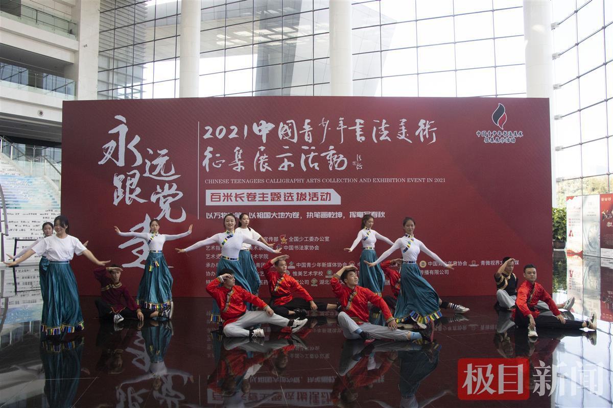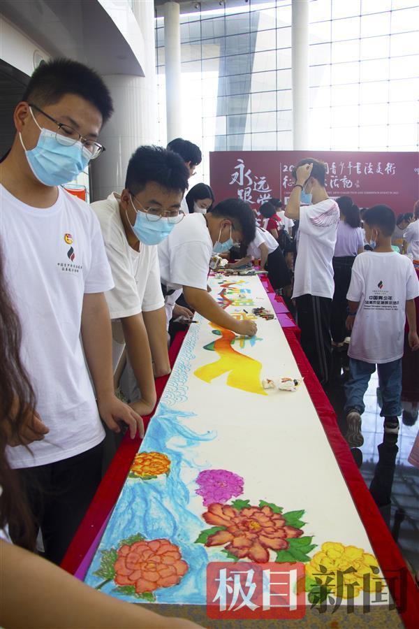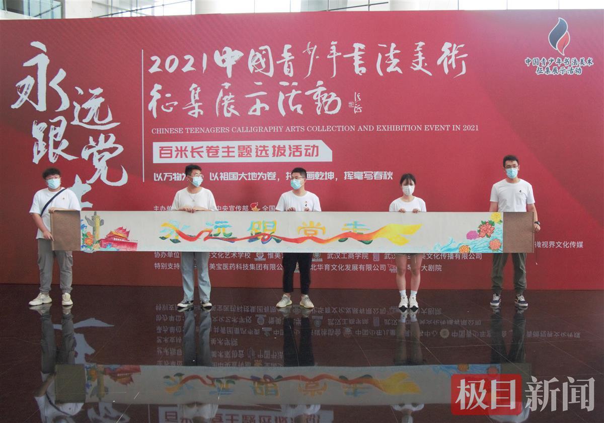 这个国庆节,由共青团中央宣传部、全国少工委办公室主办的“永远跟党走”2021年中国青少年书法美术征集展示活动——百米长卷主题选拔第二站在武汉琴台大剧院举行,武汉工商学院艺术与设计学院和校团委组织19名学生现场绘制了“永远跟党走”主题画卷,向建国72周年和建党100周年献礼。
