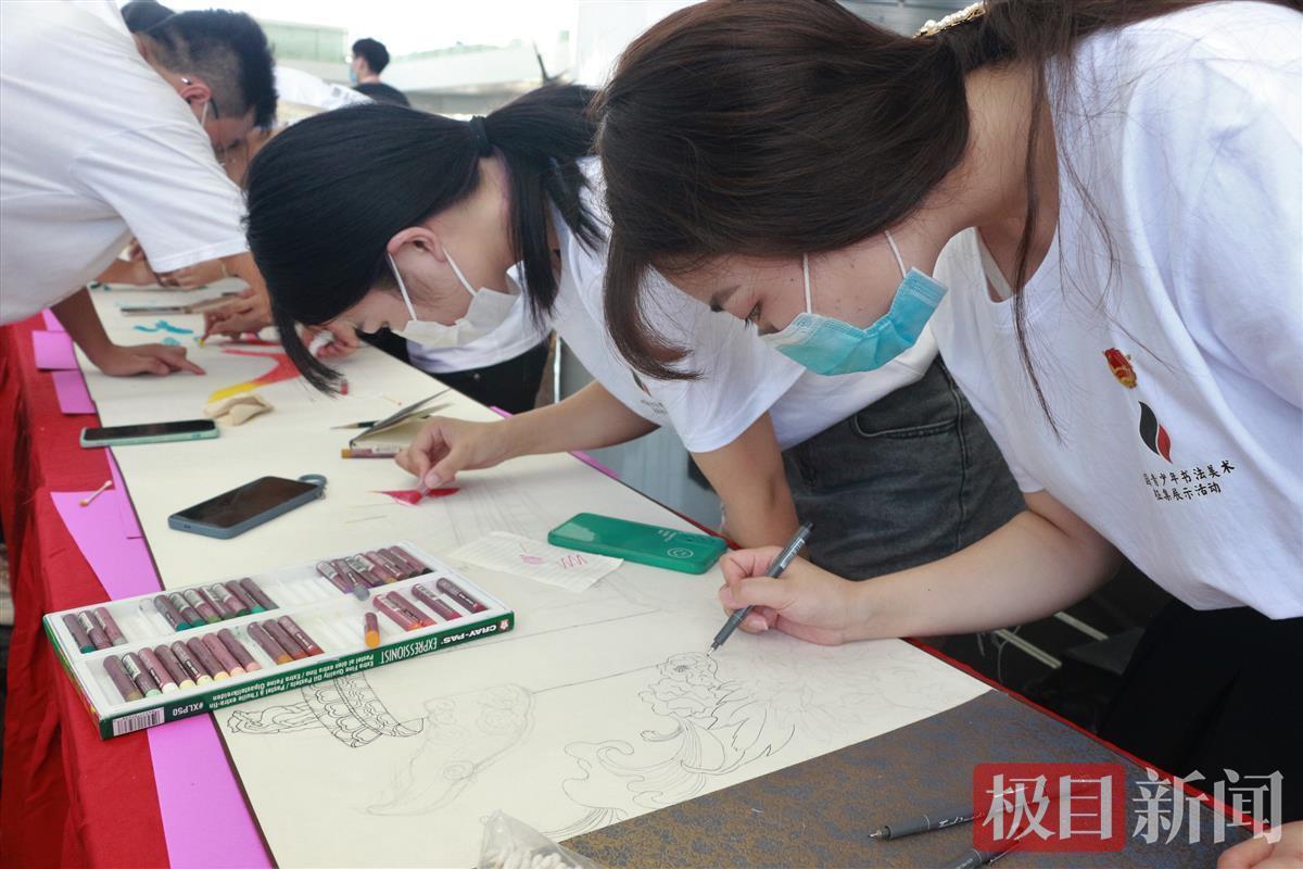中国青少年新媒体协会副秘书长王挺在现场观看了武汉工商学院学生创作的过程,对他们的作品赞不绝口,“画得不错,很有特色”。