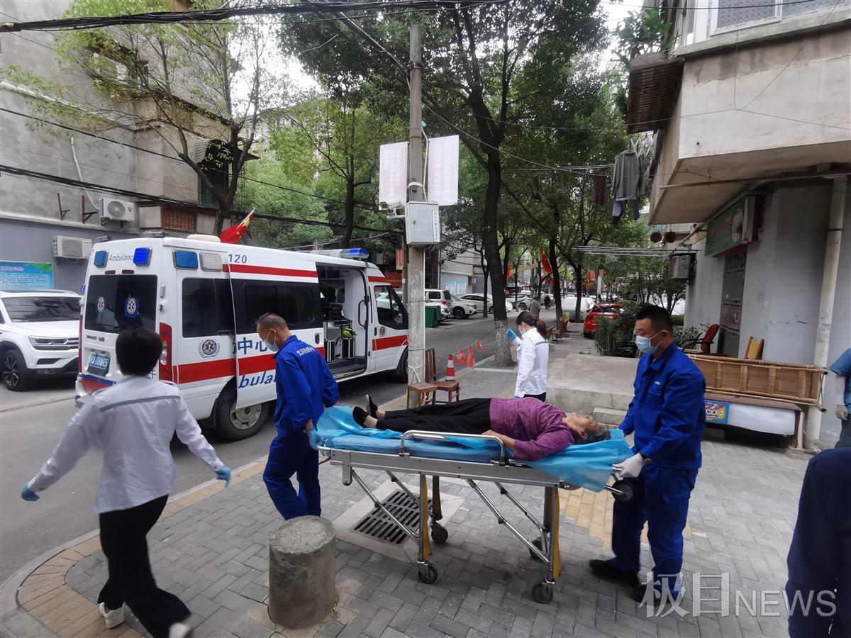 随后,彭治铭迅速拨打120急救电话,并通过手机网格宝搜索到丁婆婆家人的联系方式。接到电话后,丁婆婆的孙子张先生立即从家中赶来,此时,另外3位社区工作人员在接到消息后也迅速赶来。数分钟后,救护车到来,大家一同将老人送上了车。