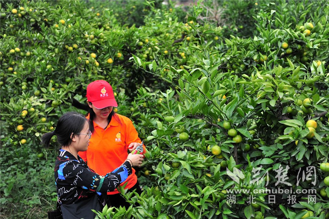 宜昌市夷陵区星翔农产品专业合作联社的生态橘园里,市民在体验采摘柑橘。通讯员 张国荣 摄