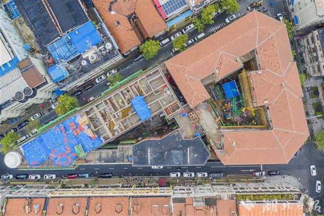 巴公房子保护修缮工程项目,总建筑面积近1.3万平方米,总投资达1.4亿元。改造后,将以巴公房子为核心,结合周边大量的历史文物建筑,整个巴公房子片区将被打造为历史文化展示街区。(湖北日报全媒记者梅涛 摄)