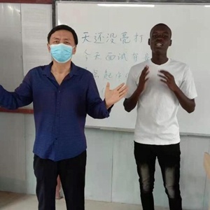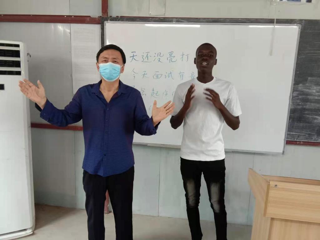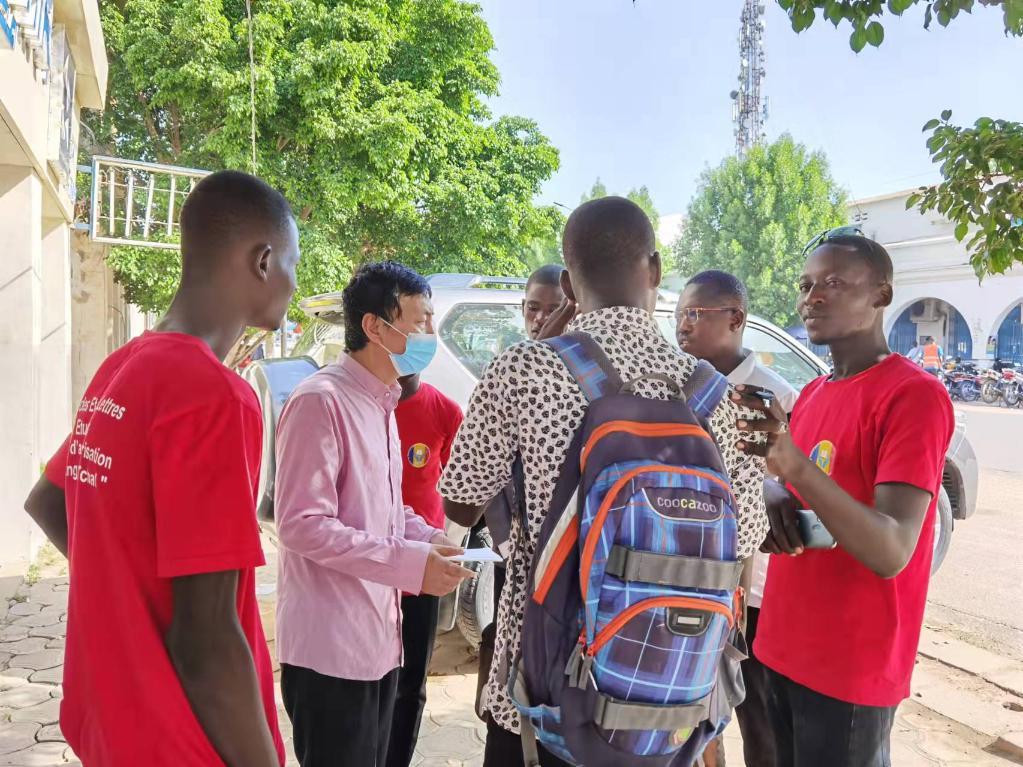 9月30日,在乍得首都恩贾梅纳,李量结束任期回国,学生们前来送行。(受访者供图)