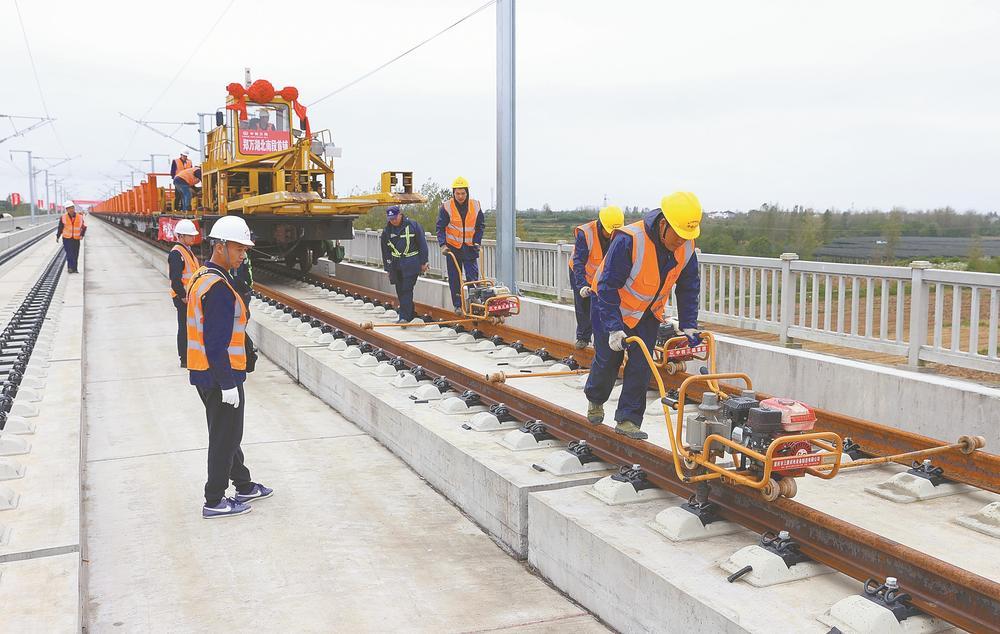10月10日,在南漳,中铁十一局集团担负施工的郑万高铁湖北段五标铺下首段钢轨,标志着郑万高铁湖北段全面进入铺轨阶段,为湖北段、重庆段全线通车奠定基础。据了解,郑万高铁全长818公里,设计时速为350公里,起于郑州,经过湖北、重庆,终点到达万州,是我国八横八纵高铁网中京昆通道郑州至重庆段的重要组成部分。