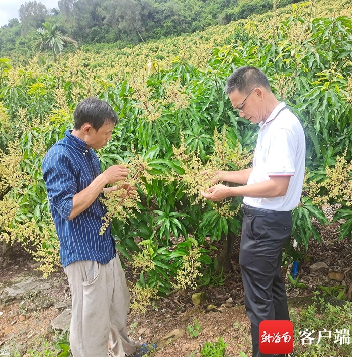 三亚热作中心技术员为农户芒果花变黑支招。记者 利声富 摄