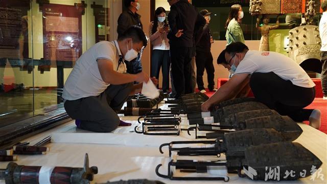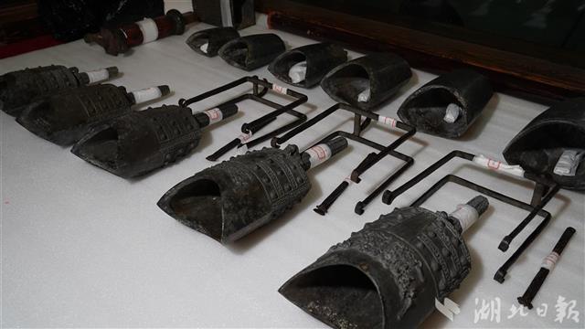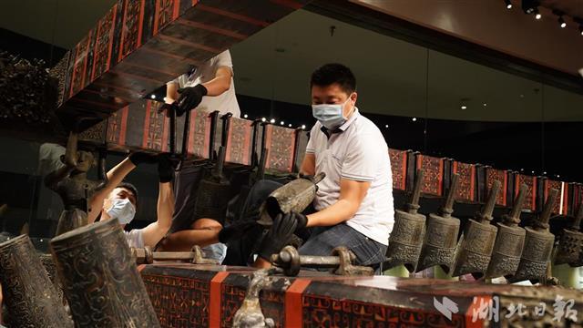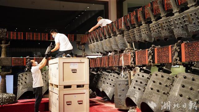 经专业人员小心翼翼地分层拆卸,10月12日上午曾侯乙编钟上层、中层的钟已拆完,整齐摆放在现场。最下层的大钟拆完后,馆方将对编钟再次保养后,装进专门定制的囊匣内搬运至新馆,上架安装。整个流程预计需要几天时间。