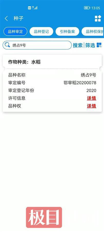 新洲区农业局农业执法大队孙队长告诉记者,何春泉所种品种为绣占9号,鄂审定编号为鄂审稻20200078,系湖北农家富种业股份有限公司生产,属于优质晚籼常规稻。