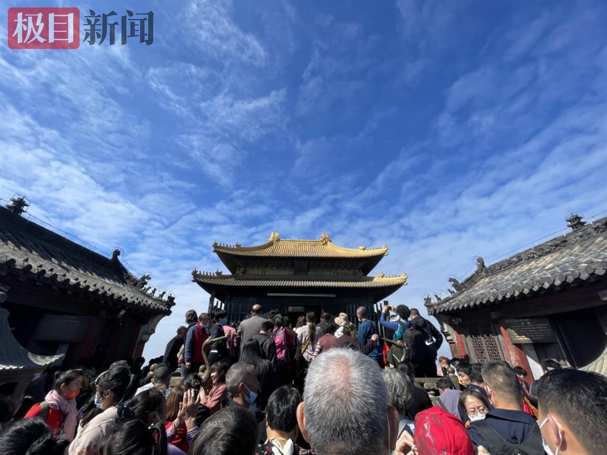 登高揽胜,祈福安康。明天就是我国的传统节日“九九重阳节”,今天一大早极目新闻记者在十堰武当山金顶景区看到,前来登高揽胜、祈福游玩的游客已是络绎不绝。在金顶太和宫,游客们早已排起了长长的队伍,景区和道协的工作人员正在向游客们免费派送“福”饼。