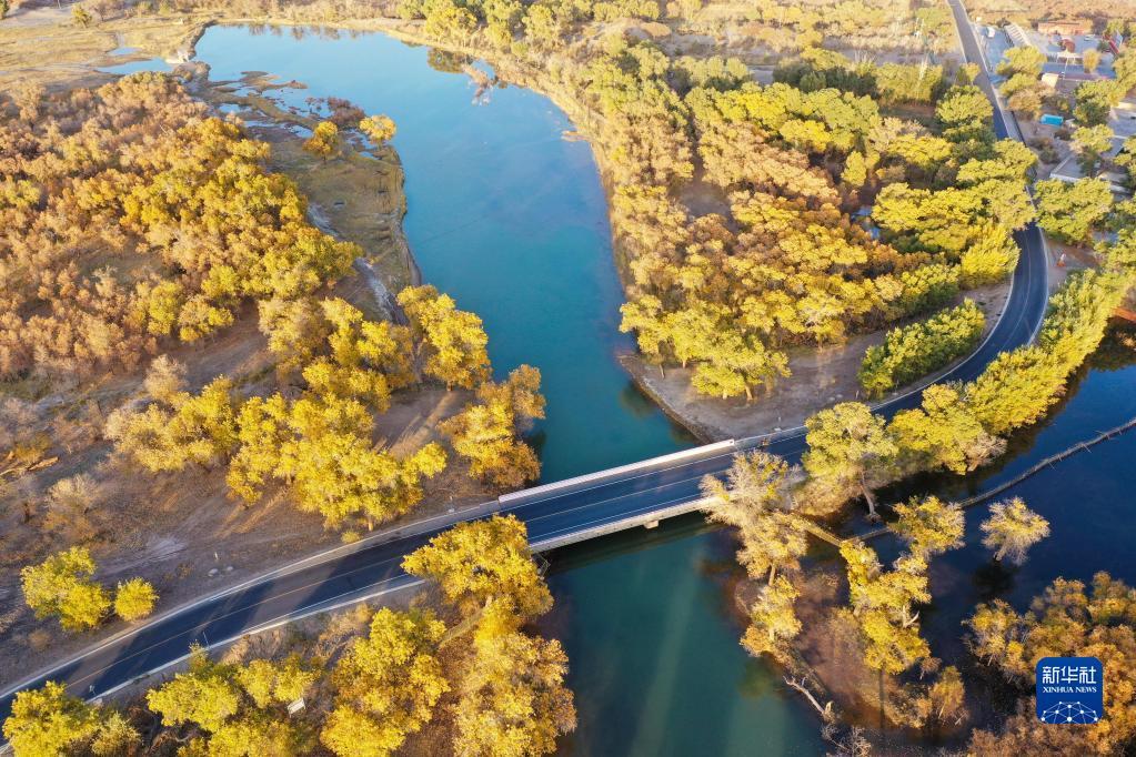 这是10月13日拍摄的额济纳旗胡杨林(无人机照片)。