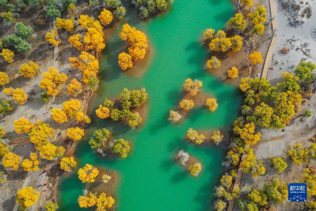 这是10月11日拍摄的额济纳旗胡杨林(无人机照片)。