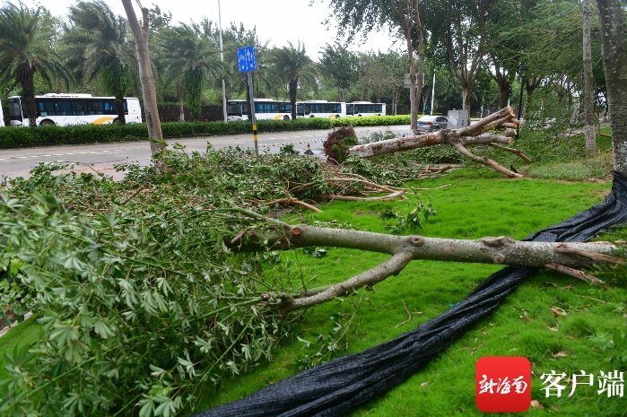 13日,海口市西海岸,天海国际小区,一棵大树被吹断,倒在一边。记者 陈卫东摄