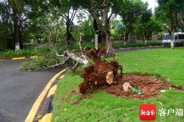 新海南客户端、南海网、南国都市报10月13日消息(记者 陈卫东)台风“圆规”来了,海口市区无论是街道还是小区,都有绿化树被连根吹倒的情况。
