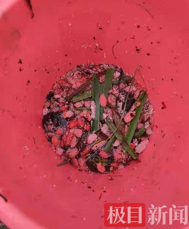有市民反映在武汉市青山区和平公园河道里,发现大量粉红色的福寿螺卵体。极目新闻记者与该公园管理处进行了联系,经公园对河道沿水面附近的虫卵进行人工清理和打捞后,暂未发现其它福寿螺虫卵。