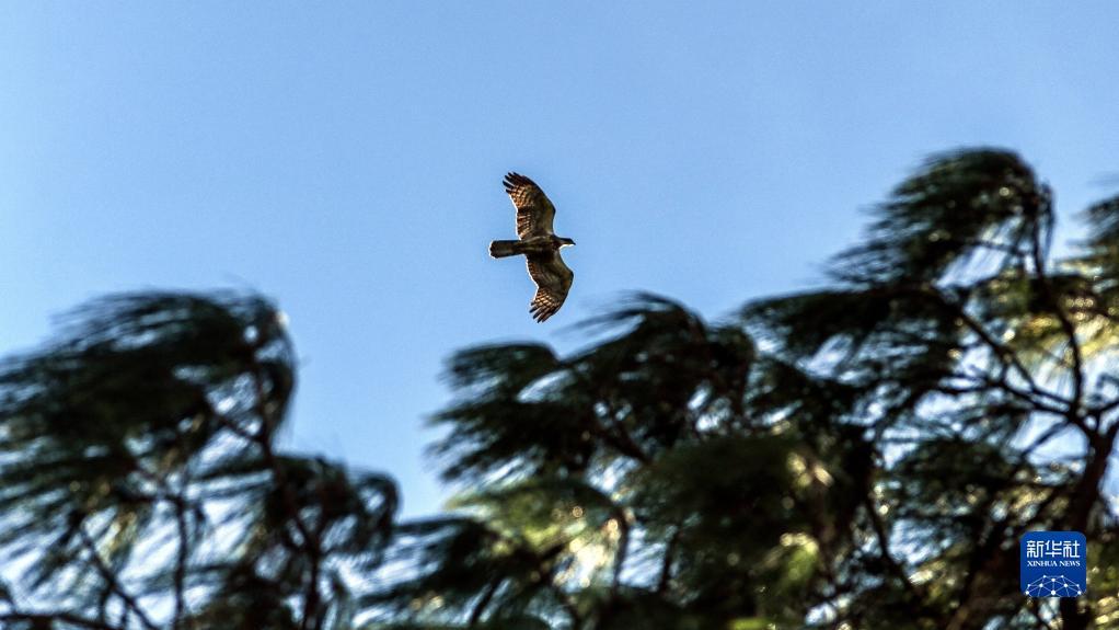 10月12日,一只猛禽在广西北海市冠头岭寻找落脚点。