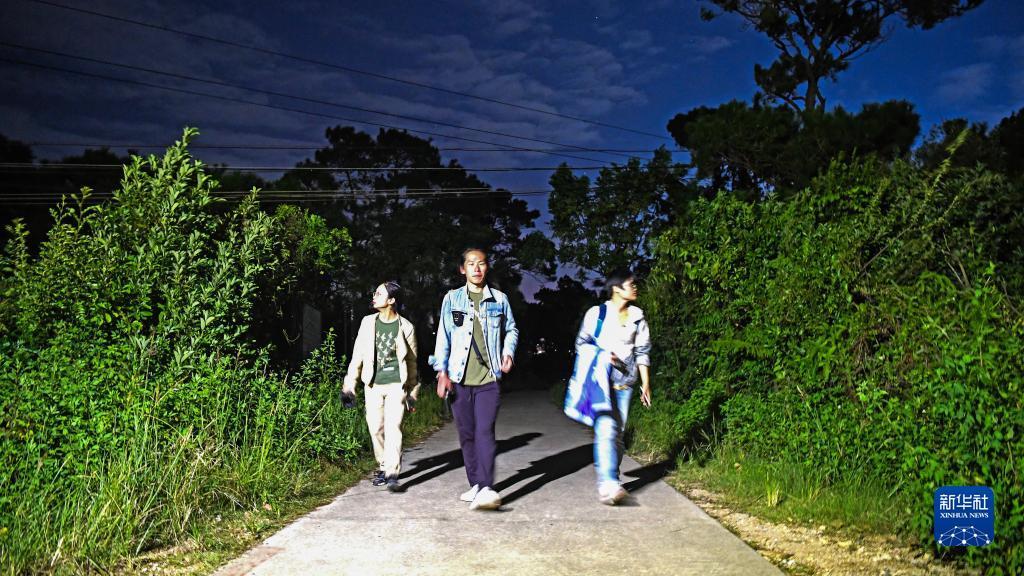10月12日,三名护鸟志愿者在北海市冠头岭夜巡。