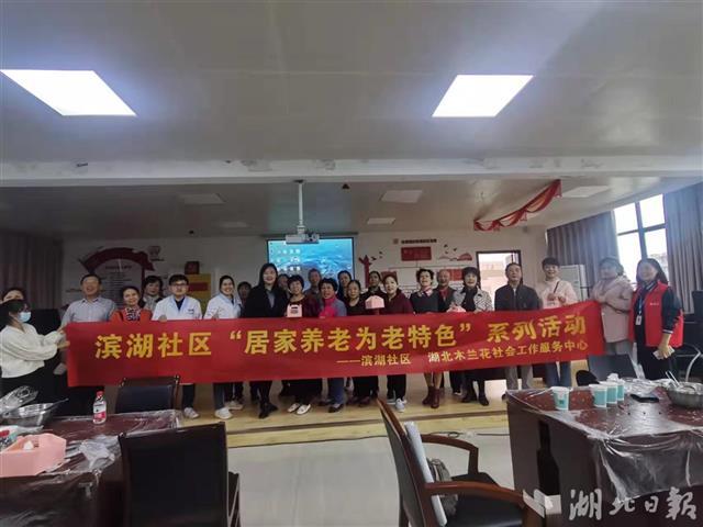 湖北日报讯(记者李光正、通讯员蓝琳)10月14日,武汉市武昌区水果湖街滨湖社区联合木兰花社会工作服务中心,开展重阳节特色文化活动,给老人送上节日祝福,和老人们一起度过快乐的重阳节。