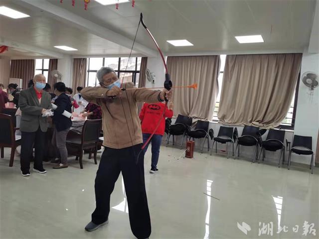 本次活动特别设置了射箭和投壶等具有中国传统文化特色的互动项目,让老人亲身体验射箭和投壶的乐趣。上弦、开弓、瞄准、放箭,一套动作完整地做下来,大家都开心不已。