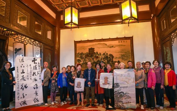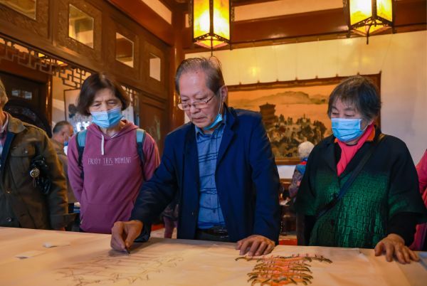 书画献礼,黄鹤楼邀老人品重阳菊花茶